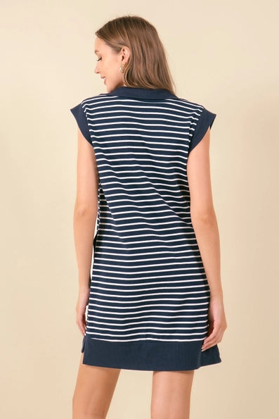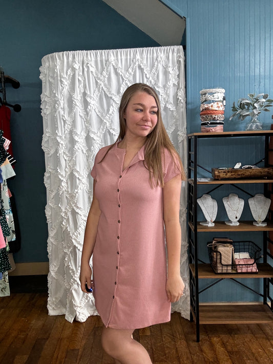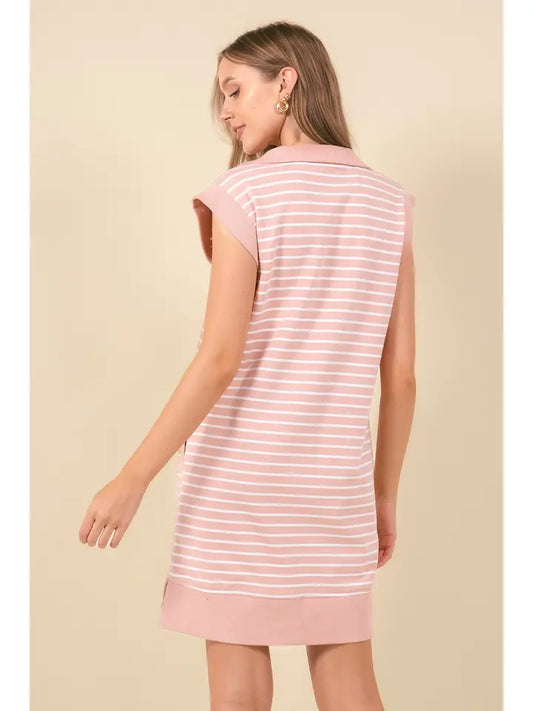 Kaylee Striped Mini Dress with Pockets - Dusty Pink