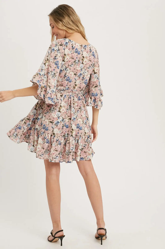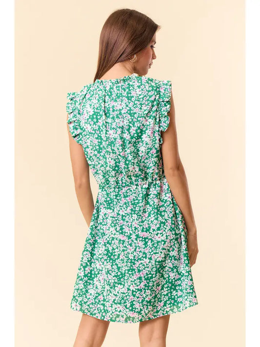 Kate Floral Ruffle Sleeve Mini Dress - Green