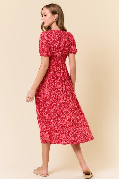 Chandee Floral Print Smocked Maxi Dress - Brick