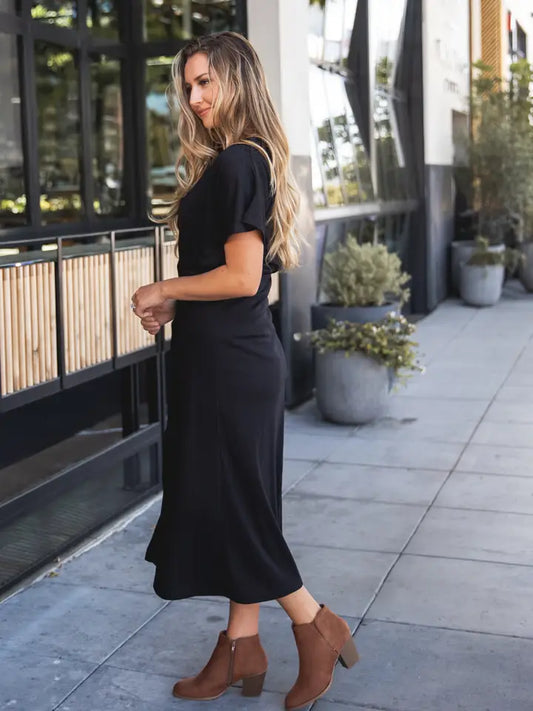 Kayla Oversized Collared Knit Midi Dress - Black/Cream
