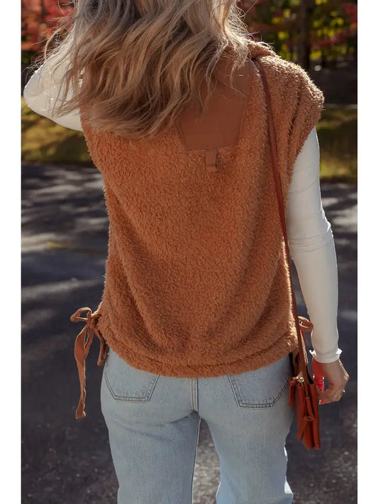 Sold outPlush Button Vest - Cinnamon