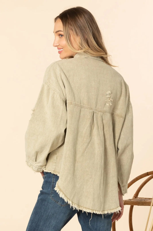 Sold outDistressed Denim Jacket -- Avocado