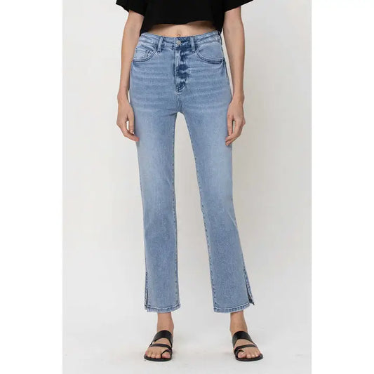 Leona Mercy Super High Rise Side Slit Straight Vervet Jean