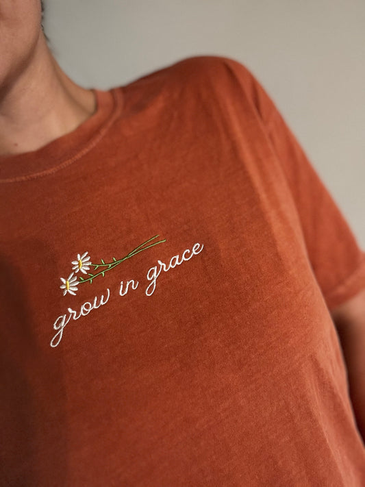Grow In Grace Daisies Embroidered Tee - Yam