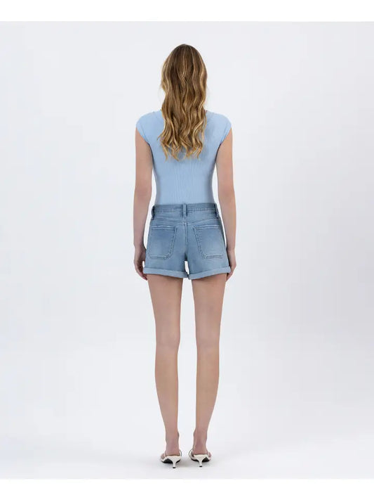 Desirable High Rise Double Cuffed Vervet Denim Shorts