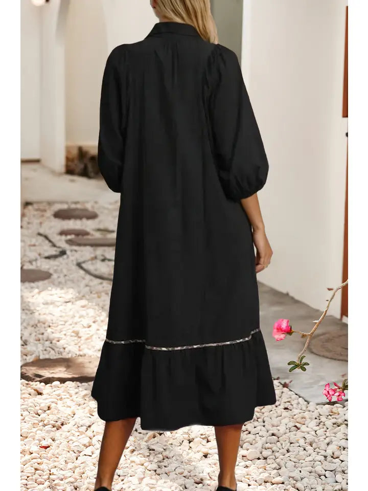 Flattering long silhouette, Collared V-neck adds an elegant touch, Smocked detail gives chic style and comfort, Leopard trim makes a bold fashion statement.